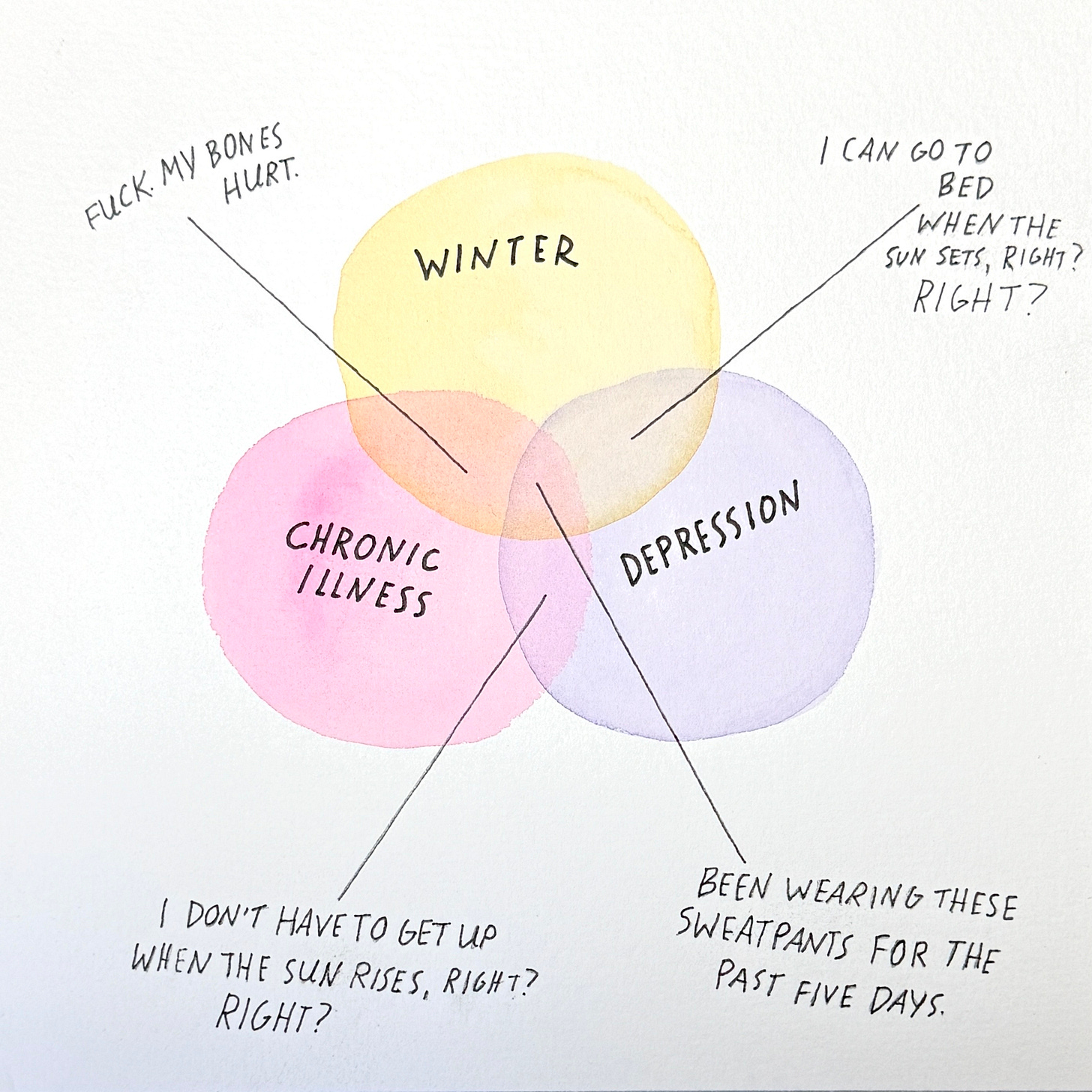 I think every chronically ill person has their own thorny little anniversaries. Maybe the day of the injury or illness that started it all. Maybe their birthday. Maybe a specific change of seasons. Whatever it is, it dials up the reminder that we aren’t who we used to be, life isn’t how we thought it would be, and maybe that’s never going to change. This year, for me, that date was New Year’s Day.