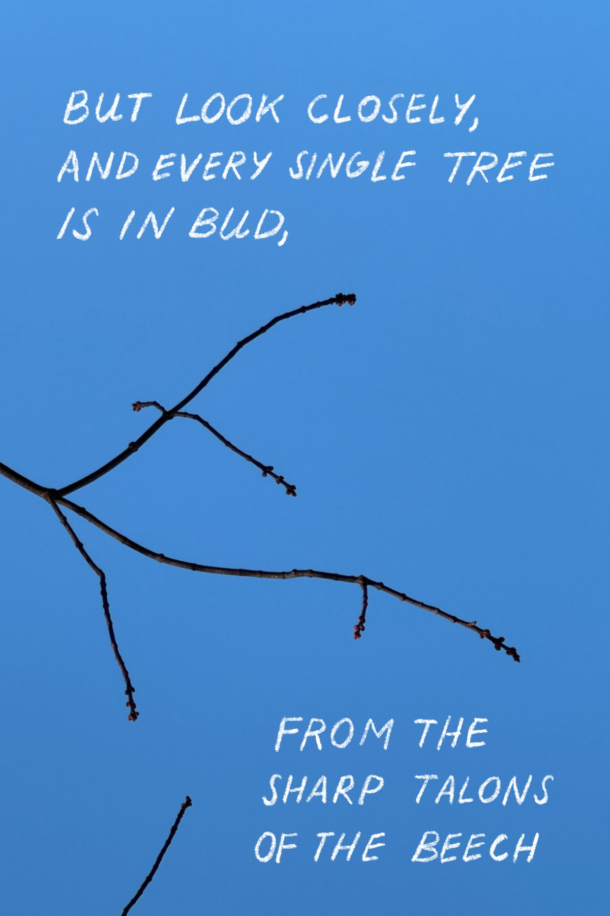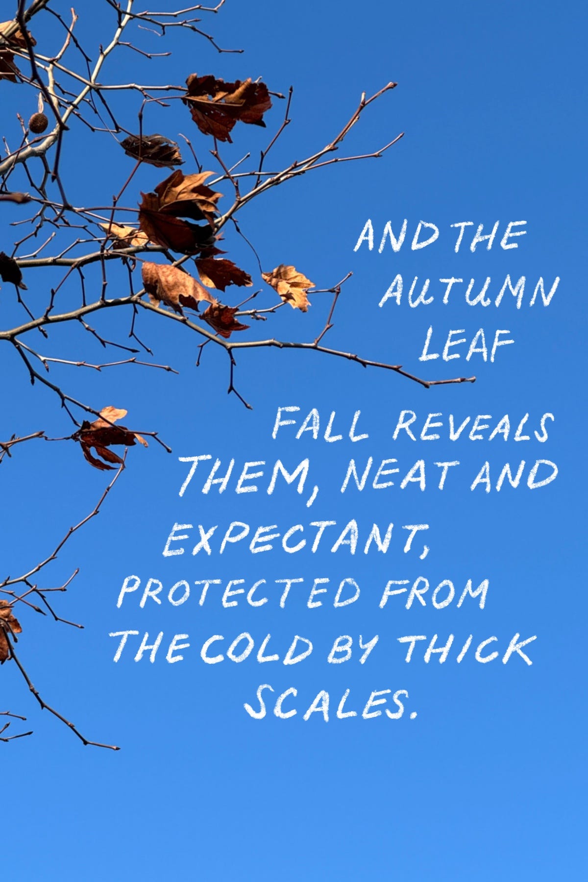 Love that poem--it's a great reminder, too! I always think about that when I look out at our Silver Maple, because its buds are HUGE, and look a little like flowers waiting to bloom, even in the dead of winter, you can feel its anticipation.